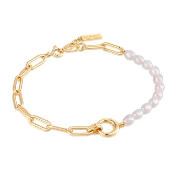 Ania Haie Pearl Power Rannerengas Hopeakullattu B043-02G