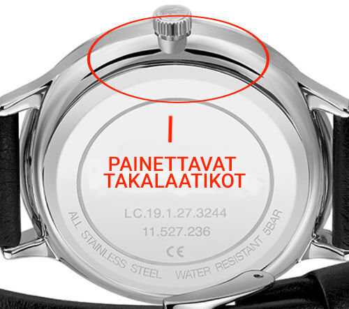 Joissakin kelloissa pariston alle on piilotettu pieni suojakiekko. Jätä tämä rauhaan.