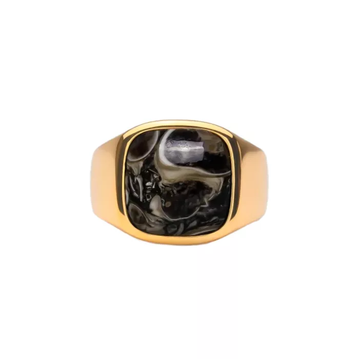 IX Studios Turtle Agate Signet Sormus 22 ka Hopeakullattu DMN0282GDTA